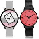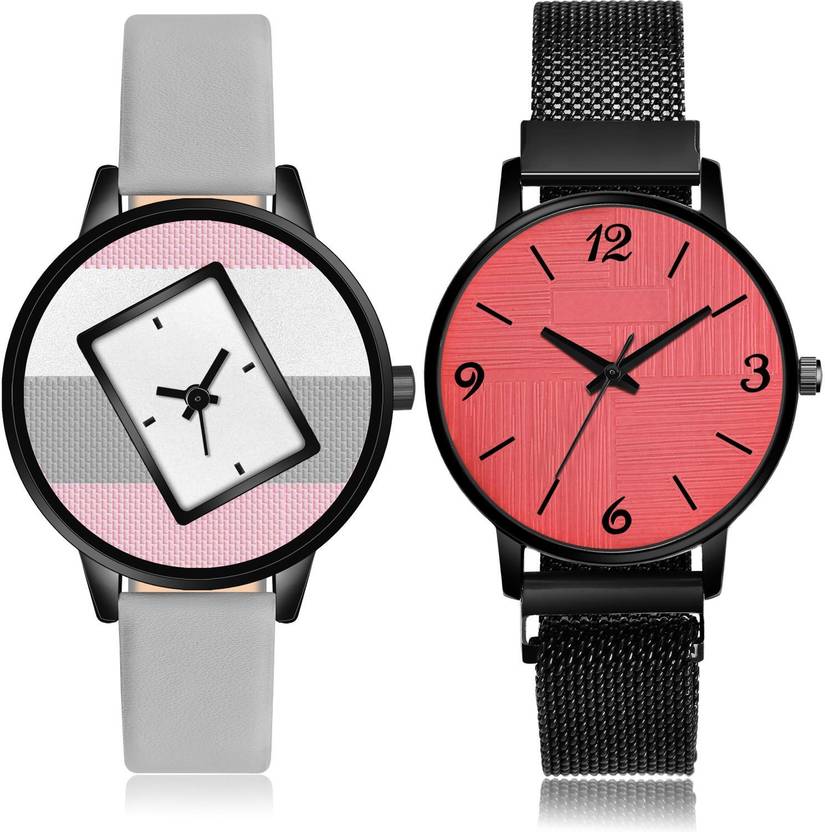 Dial Colour : Multicolor And Red ; Band Colour : Grey And Black ; Case Shape : Round ; Band Material : Genuine Leather And Metal ; Case Diameter : 36 And 32 mm ; TIMETRANSELEVATE Brand New Luxury casual genuine leather And magnet chain Grey And Black Colour Analog-Digital Genuine Leather And Metal Belt 2 Watch Combo For Women And Girls - GM547-GM226