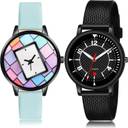 Dial Colour : Multicolor And Black ; Band Colour : Blue And Black ; Case Shape : Round ; Band Material : Genuine Leather And Plastic ; Case Diameter : 36 And 32 mm ; TIMETRANSELEVATE Best Model casual genuine leather And 0 Blue And Black Colour Analog-Digital Genuine Leather And Plastic Belt 2 Watch Combo For Women And Girls - GM548-(66-L-10)