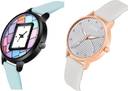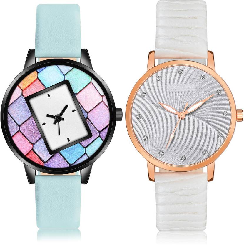 Dial Colour : Multicolor And White ; Band Colour : Blue And White ; Case Shape : Round ; Band Material : Genuine Leather ; Case Diameter : 36 And 34 mm ; TIMETRANSELEVATE Modern Luxury casual genuine leather And 3D Blue And White Colour Analog-Digital Genuine Leather Belt 2 Watch Combo For Women And Girls - GM548-GM381