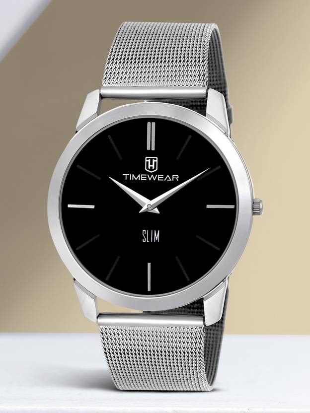 TIMEWEAR 185BDTG TIMEWEAR Analog Slim Two Hands Black Dial Stainless Steel Chain Analog Watch - For Men