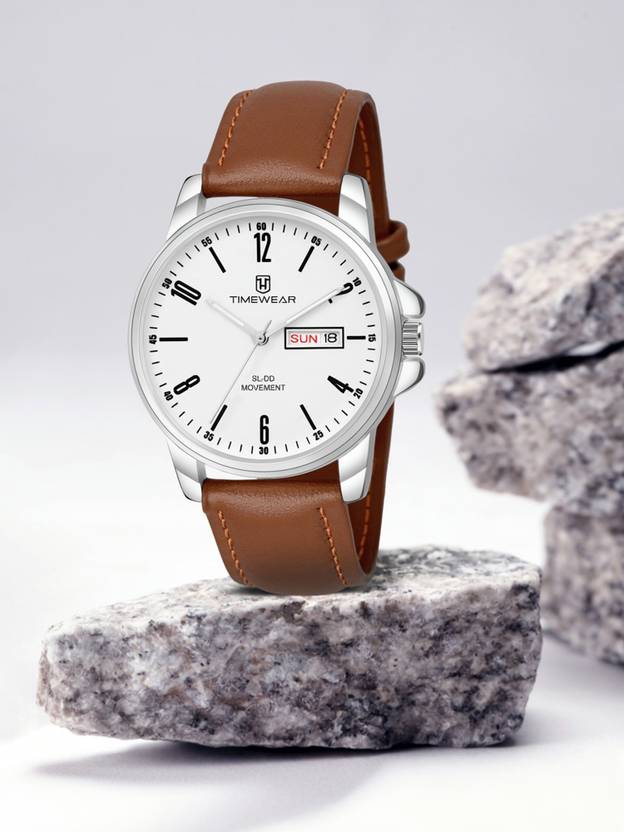 TIMEWEAR 307WDTG TIMEWEAR New Track Number Dial, Day & Date, Brown Leather Strap Analog Watch - For Men