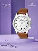TIMEWEAR New Track White Number Dial Brown Leather Strap