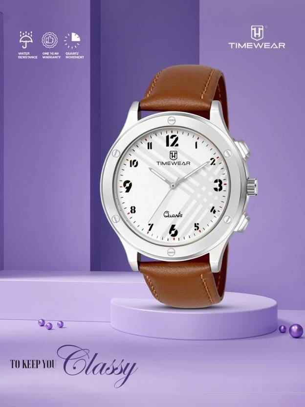TIMEWEAR New Track White Number Dial Brown Leather Strap Analog Watch for Men