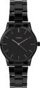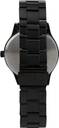 42mm mens sleek case with black tone bracelet and black dial and modern clean aesthetics with festive sparkle.