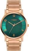Timex Men 39mm Brass Round Black case Analog Watch with a Blackish Blue dial and Black Stainless Steel Bracelet.