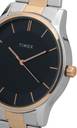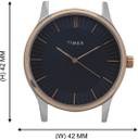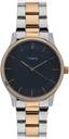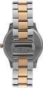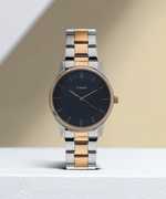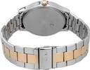 42mm mens sleek case with silver-rose gold two-tone bracelet and blue dial and modern clean aesthetics with festive sparkle.
