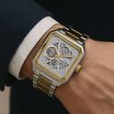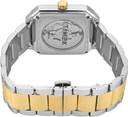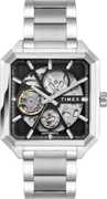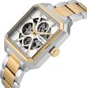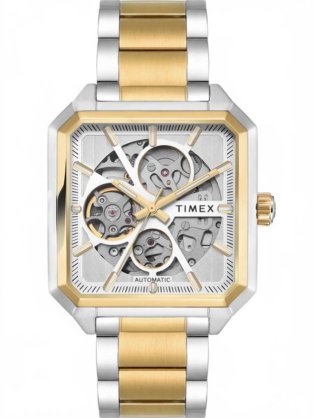 Timex Men 37mm Square shaped Silver-Gold Tone Stainless Steel case and Silver automatic stamped layered dial and Gold-Silver Stainless Steel Bracelet with Push Button clasp, mineral glass, automatic movement.