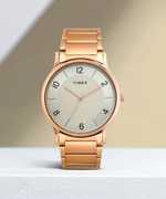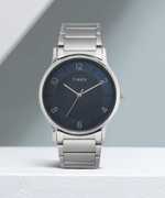 Timex Men 39mm Brass Round Black case Analog Watch with a Blackish Blue dial and Black Stainless Steel Bracelet.