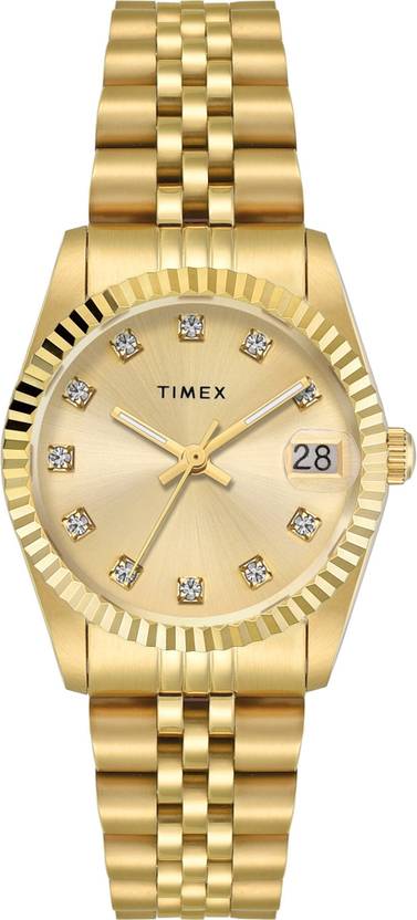TIMEX Date Display with (Magnifier), Champagne Dial Analog Watch - For Women