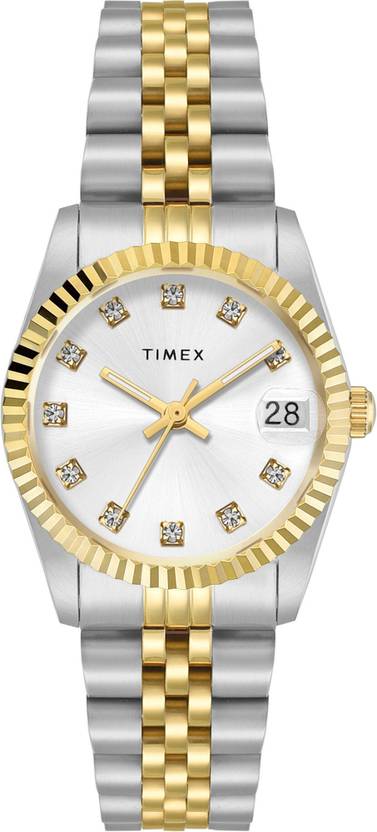 TIMEX Date Display with (Magnifier), Silver Dial Analog Watch - For Women