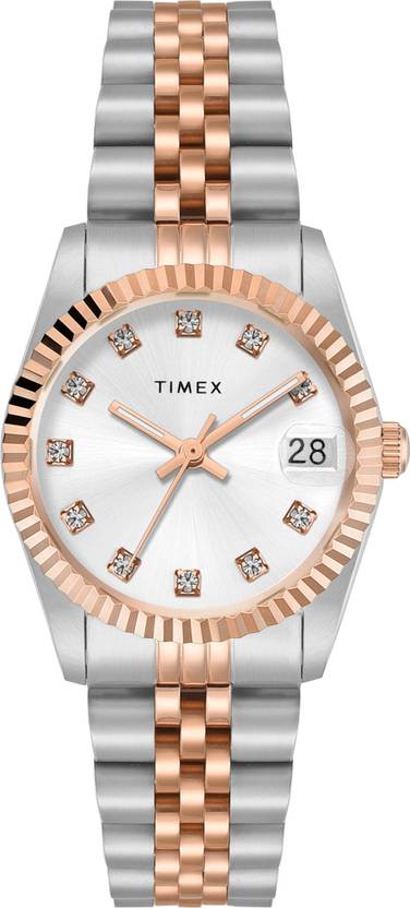 TIMEX Date Display with (Magnifier), Silver Dial Analog Watch - For Women