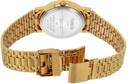 This watch comes with a highly durable stainless steel strap that is gold colored. A click-and-lock bracelet style clasp allows you to conveniently adjust its fit.