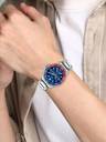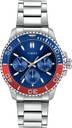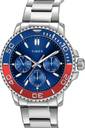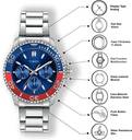 Timex Men 43mm Round Silver tone case with Blue-Red Top Ring, Multifunction watch, Blue dial and Silver Stainless Steel Bracelet.