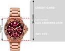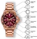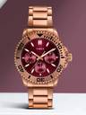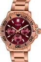 Timex Men 43mm Round Rose Gold tone case with Rose Gold Top Ring, Multifunction watch, Dark Burgundy dial and Rose Gold Stainless Steel Bracelet.