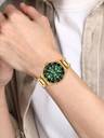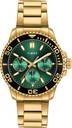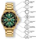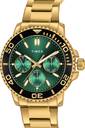 Timex Men 43mm Round Gold tone case with Black Top Ring, Multifunction watch, Green dial and Gold Stainless Steel Bracelet.
