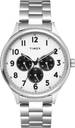Timex Men's 43mm Brass Round Silver tone case Multifunction watch with silver dial and silver tone stainless steel bracelet.