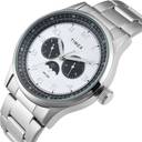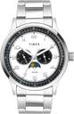 Timex Men's 45mm Round Silver-Tone Stainless Steel Case with White Multifunction Dial with Luminant Hands and Silver-Tone Stainless Steel Bracelet with Push Button Clasp Clasp. Quartz Movement, Mineral Glass.
