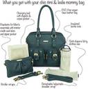 The Rachel Bag is as scrumptious as a cupcake. It's made from easy to clean vegan faux leather and features our custom hardware in an antique brass finish. Each Rachel comes with 6 fashionable and functional accessories so you never have to sacrifice style for function. Each Set features: A cross body, adjustable detachable strap so you can wear it hands free whenever you need to; Our specially designed changing pad with a front mesh pocket where you can store your diapers, wipes and creams when you need to make a quick diaper change trip; A stylish clutch that you can use as your purse with interior credit card slots and an inside zipper pocket; An insulated bottle tote to keep your baby's bottles warm or cool; Matching stroller straps so you can hang your babe bag from your stroller; Zippered clothes sac to keep your wet or dirty clothes contained; Water resistant, light colored lining so you can easily see everything in your bag; 5 exterior pockets; 6 interior organizational pockets; Inside key fob - never lose your keys.