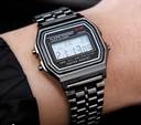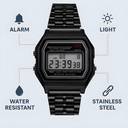 Unisex Black Digital Waterproof Watch Metal Strap Alarm Stopwatch