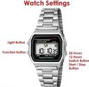 silver Digital Watch Waterproof Stainless Strap Stopwatch Alarm