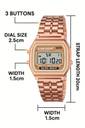 This stylish rose gold digital watch is perfect for men and women seeking a modern, functional accessory. Featuring a stainless steel strap, digital time and date display, alarm, and LED light, it blends fashion with utility. Its water-resistant design and sleek finish make it ideal for daily wear, parties, or casual outings.
