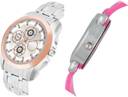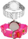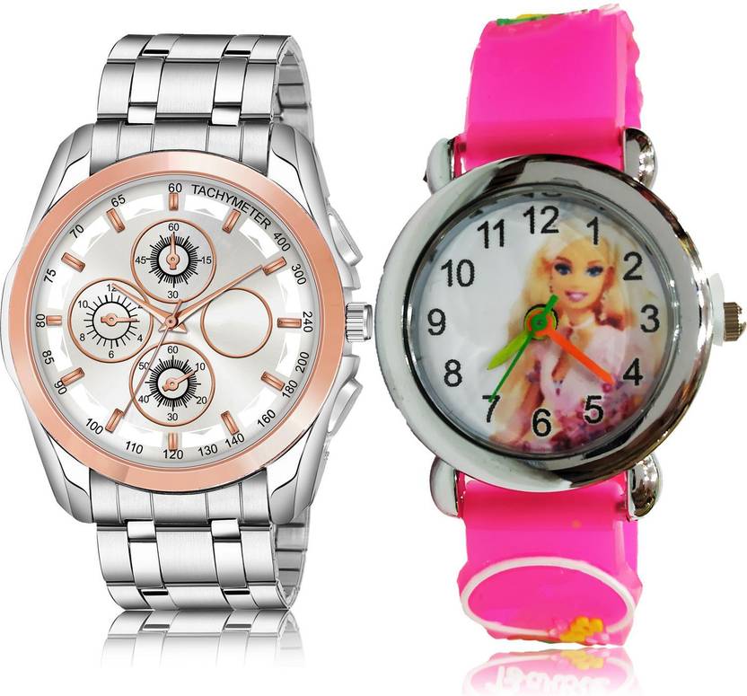 Dial Colour : Silver And White ; Band Colour : Silver And Pink ; Case Shape : Round ; Band Material : Metal And Plastic ; Case Diameter : 45 And 29 mm ; TIMOXIDE Contemporary Wrist Royal Chain And Doll Kids Silver And Pink Colour Analog Metal And Plastic Belt 2 Watch Combo For Boys And Men - BL46.115-BK21