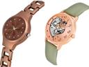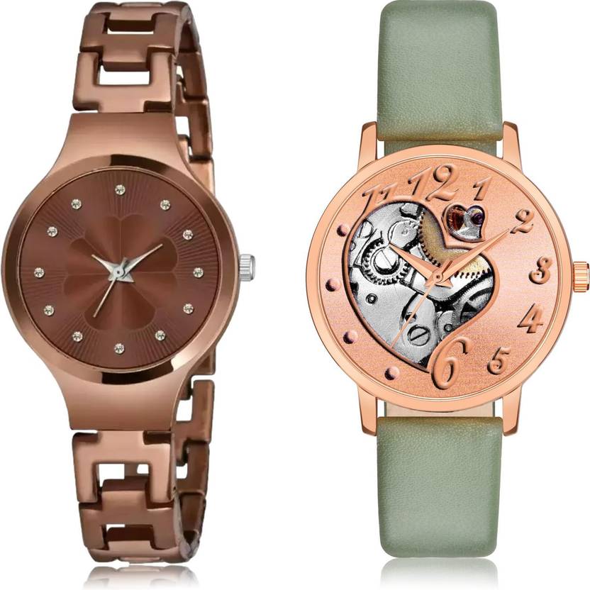 Dial Colour : Brown And Rose Gold ; Band Colour : Brown And Green ; Case Shape : Round ; Band Material : Metal And Genuine Leather ; Case Diameter : 28 And 34 mm ; NEUTRON Modern Technology chain bracelet And love heart Brown And Green Colour Analog Metal And Genuine Leather Belt 2 Watch Combo For Women And Girls - G693-GM373
