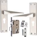1 Mortice Pair, 1 Mortice lock, 1 Cylinder lock, 1 Side Crame, 1 Spindle bar, screw