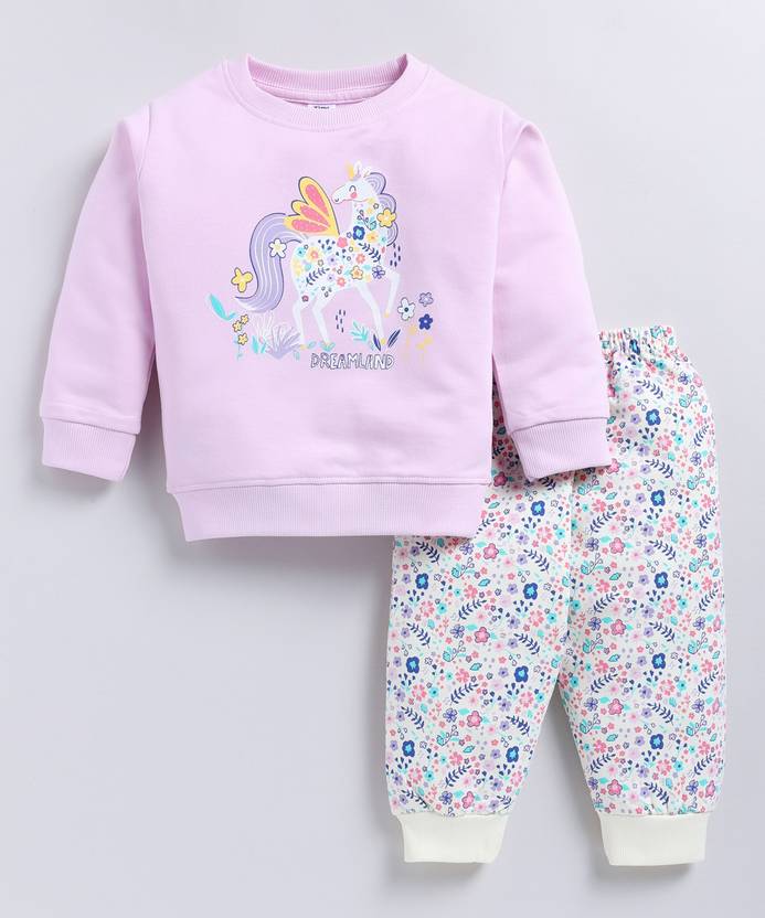 The Sweatshirt and Track Pants combo is made with cotton. This trendy and cozy Sweatshirt is designed to keep young girls warm and stylish. The Sweatshirt has ribbed cuffs for snug fit. The Track Pants has elasticated waistband along ribbed hems for comfortable and proper fit.