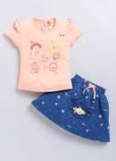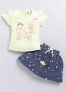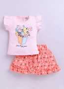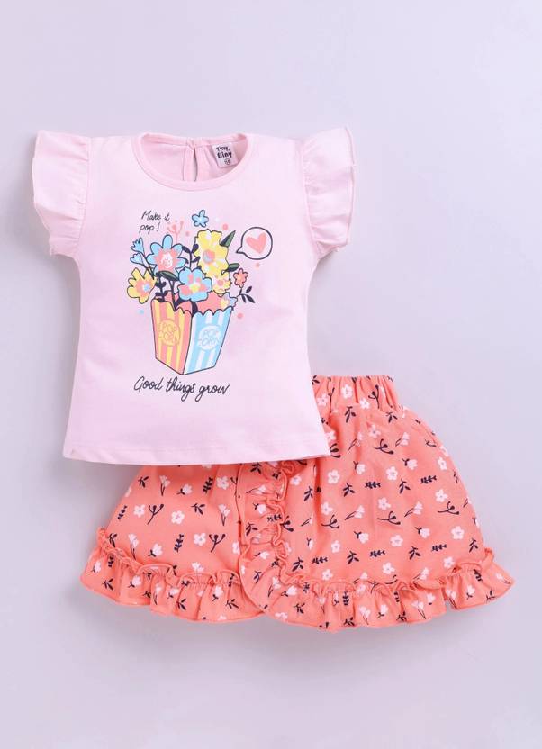 Brighten up your little girl's day with this adorable Tiny Baby girls’ Top and Skirt set. Featuring a cute floral popcorn print top with ruffle sleeves and floral printed skirt with frill detailing, this outfit is perfect for summer wear. Made from soft cotton fabric, it ensures all-day comfort and play-friendly style.