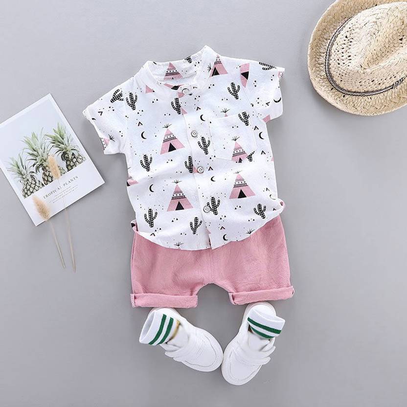 Tiny Brezy Baby Boys & Baby Girls Party(Festive) Shirt Shorts (Baby Pink)
