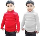 TINY HANDS Boys & Girls Solid High Neck Red, White Sweater
