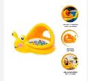 The children's inflatable pool Snail is made in bright colors and an original design. The pool is equipped with an inflatable bottom and a canopy that will protect the kids from the scorching sun. The pool has no sharp corners and is absolutely safe for children. In cold weather, it can be used indoors as a dry pool filled with balls.