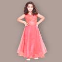 Net Stitched Flared/A-line Gown (Red)