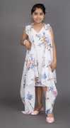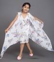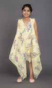 Let your little girl flaunt her fashionable side with this unique bright designer dress. Comfy & trendy dress will make her look even more stylish in this modern era. This georgette floral dress is a fun piece which literallay gives her wings to show. Its best suitable for hangiout out with her friends & joyous outings.