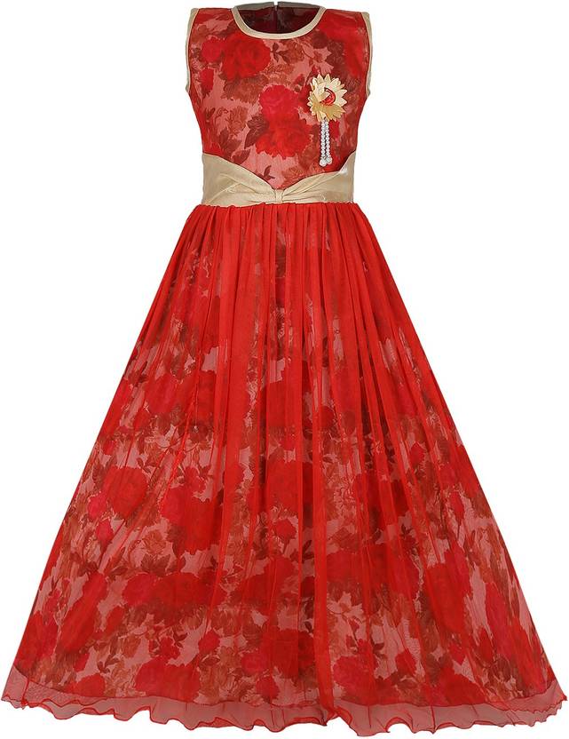 TINY TOON Girls Maxi/Full Length Party Dress (Red, Sleeveless)