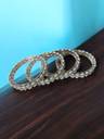 Add a touch of grace and sophistication to your look with our Gold-Plated Pearl & Stone Beaded Bangles Set. This exquisite set of 4 bangles features a stunning combination of delicate pearls and shimmering stones, intricately designed to enhance your traditional and festive attire. Whether you're attending a wedding, celebrating a festival, or looking for the perfect gift, these bangles are sure to impress. The high-quality gold-plated metal ensures durability and retains its shine over time, while the lightweight design offers a comfortable fit for extended wear. Pair these versatile bangles with sarees, lehengas, or even modern ethnic wear to create a statement look. A must-have accessory for every jewelry collection! We have a huge collection of designer imitation jewellery like american diamond jewellery collection, gold plated jewellery collection, temple jewellery collection, valentine collection, jewellery combos and many more.