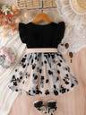 TIOR Girls Midi/Knee Length Festive/Wedding Dress (Black, Cap Sleeve)