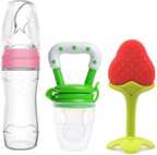 Crafted from 100% BPA-free, food-grade silicone, this combo encourages self-feeding and improves motor skills. The squeeze feeder bottle is ideal for feeding rice paste, cereal, milk, or purees, while the fruit nibbler allows your baby to enjoy fresh fruits without choking hazards. The soft teether soothes sore gums and helps during teething stages.