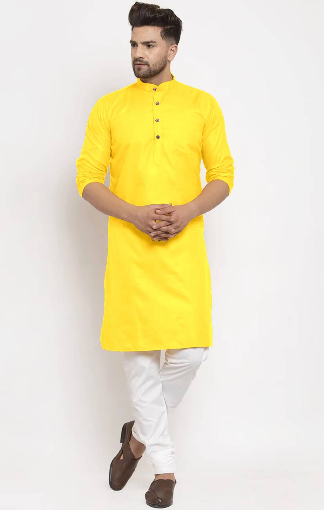 The UBUNIQUE men's kurta is a traditional Indian garment that exudes elegance and comfort. Crafted with premium fabrics, this kurta offers a loose and relaxed fit, allowing for unrestricted movement and breathability. Suitable for all seasons, it can be worn in both warm and cool climates, making it a versatile addition to any wardrobe. The kurta features intricate embroidery or patterns that add a touch of sophistication to its design. Whether you're attending a festive occasion or simply seeking a stylish ethnic ensemble, the UBUNIQUE men's kurta is a perfect choice. It can be paired with traditional pyjamas or jeans for a fusion look. With its skin-friendly materials and meticulous craftsmanship, this kurta ensures utmost comfort throughout the day. Embrace the rich cultural heritage of India while embracing modern fashion with the UBUNIQUE men's kurta. Please note that hand washing is recommended to maintain its pristine condition. Refer to the size chart for accurate measurements and a perfect fit.UBUNIQUE is known for its Trendy settlement of Shirts, Kurtas. High-quality fabric cotton, Slim-fit, Full Sleeve, Directly From manufacturer at affordable Prices. Color may slightly vary due to Photographic Lighting or your system brightness. Order According to your chest size or according to your branded product to avoid returns. Size Guide: The product is in 1-inch loosing