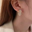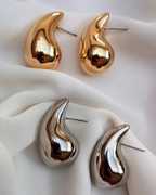 Featuring a base crafted from alloy brass, these women’s earrings come gold-plated for a subtle touch of shine. The surface has been treated with a glossy, shimmer finish that reflects light gently without overwhelming the look. This combination creates a balanced aesthetic that suits a range of styles, from understated to slightly dressy. The gold plating adds a refined layer to the brass structure, while the shimmer effect lends visual appeal to the overall design.