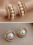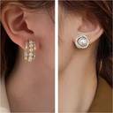 Tiso Combo of 2 Korean Earrings Pearl Earrings For Girls C-Shaped Earrings for Women Cubic Zirconia, Pearl Alloy, Brass Cuff Earring, Earring Set, Huggie Earring, Rhinestone Studs, Stud Earring