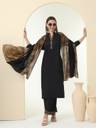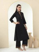 Sporting a straight-cut kurta, this outfit falls to a calf length for ease and comfort. Plus, the V-neck adds shape to the neckline while maintaining simplicity. Additionally, regular three-quarter sleeves provide balanced coverage and ease of movement. The palazzo pants are designed with an elastic waist for flexibility and a relaxed fit. Also, a practical side pocket on the pants adds function without disrupting the design. Moreover, the dupatta completes this set, providing a soft layer to drape as desired.