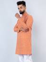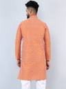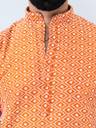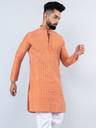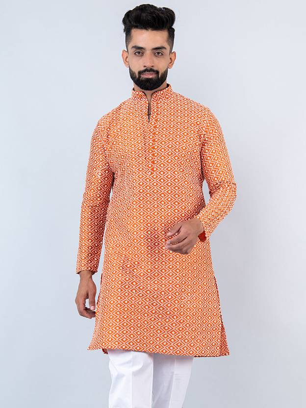 About the product- This Orange Diamond Embroidered Cotton Mens Kurta is lightweight and comfortable. This full sleeve kurta is all set to take your style to the next level.