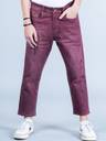 Maroon Ripped Cropped Slim Fit Mens Jeans