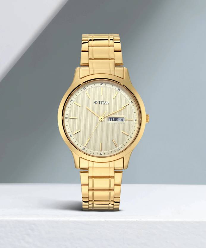Titan wedding collection for Men |Yellow gold Metal bracelet | Rich dial with day & date