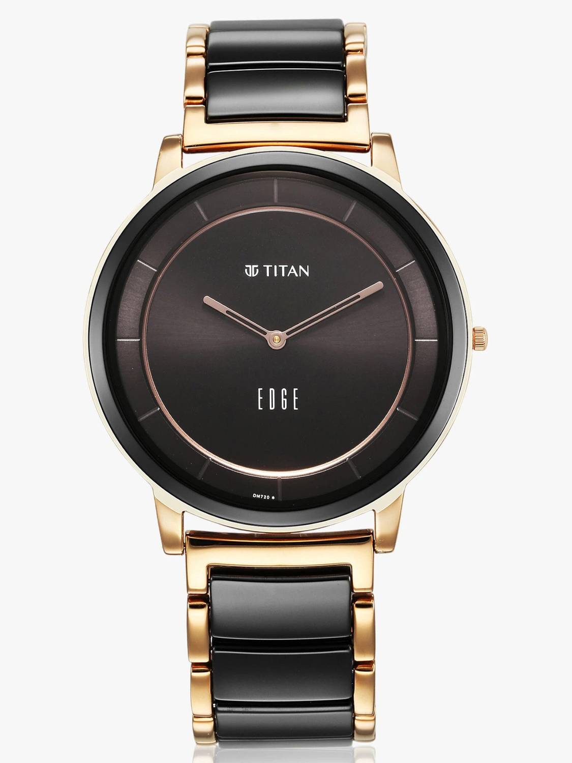 Titan Titan Edge Black Dial Black Ceramic & RoseGold Stainless Steel Strap Analog Watch - For Men
