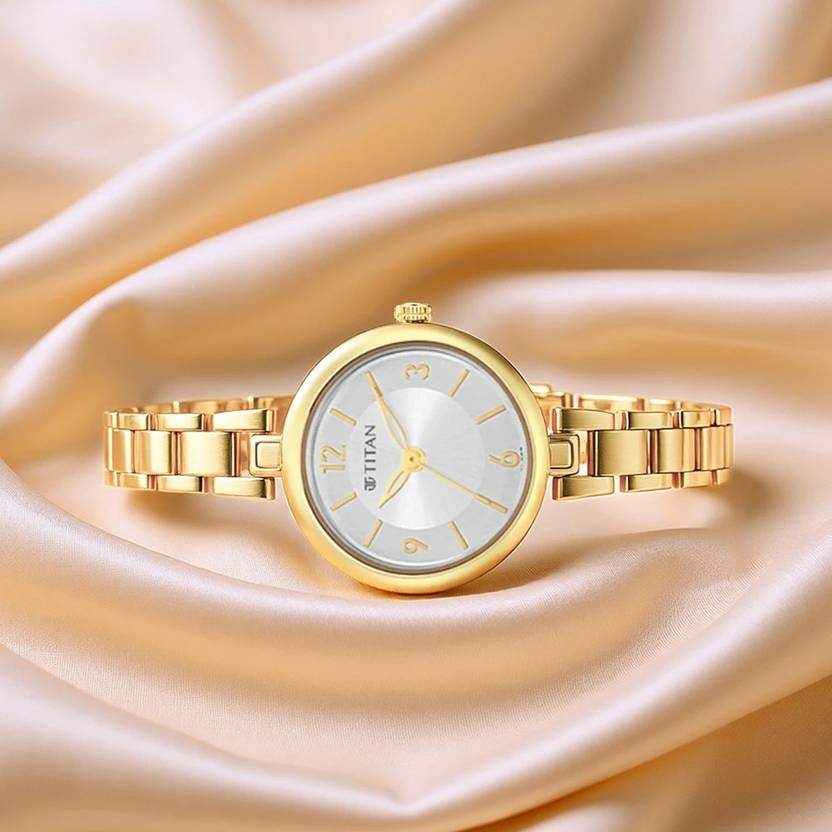 Titan Lagan 2021-22 Titan Lagan Quartz Silver Dial Gold Metal Strap Analog Watch - For Women
