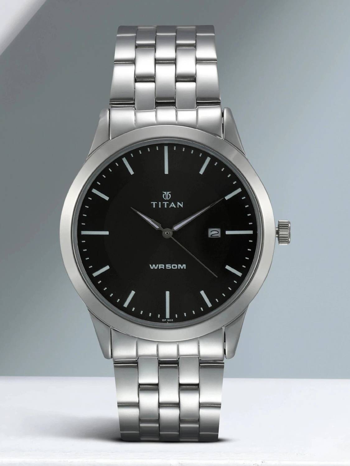 Titan NP1584SM04 Titan With Date Anthracite Dial Silver Stainless Steel Strap Analog Watch - For Men