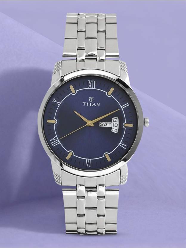 Titan NP1774SM01 Titan Karishma with Day & Date Blue Dial Silver Stainless Steel Strap Analog Watch - For Men